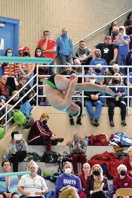 In the diving competition, North’s Cole Wheeler finished second with a score of 355.05 and East’s Gavin Day placed third with a score of 335.55. Both advanced to the diving regional at Jasper at 6 p.m. Tuesday. Max Miller of Bloomington North won the diving with a score of 436.35. The top eight from the diving regional qualify for state.