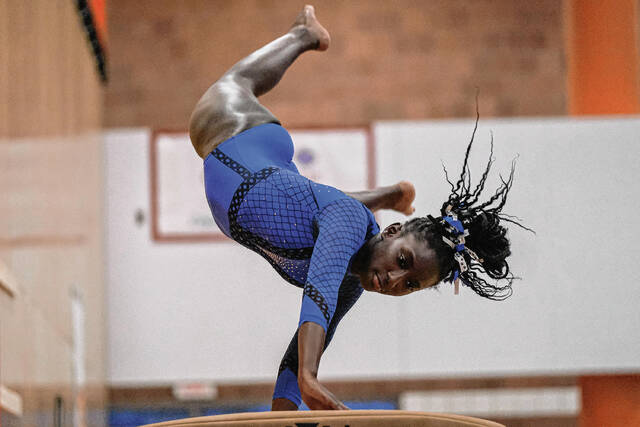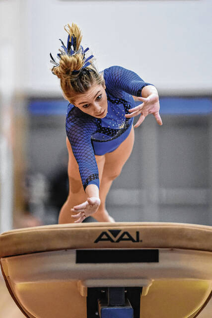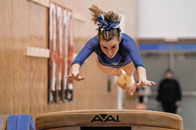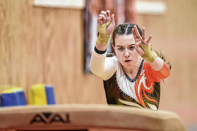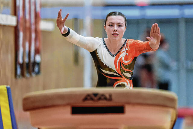 “We continue to preach to the girls that if they can all bring up their individual scores by a couple or three tenths (of a point), then you’re going to be able to bring those team scores up by two points or so, and tonight, they were able to do that,” North co-coach Bob Arthur said. “We kind of pulled it together. Beam was the only event we kind of struggled on, and we have a whole ’nother point there. We could have easily been 110 if we could have been on top of beam. Hopefully, we’ll pull it all together on Saturday.”