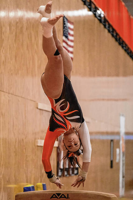 “We did have some good strong points,” East co-coach Katie Menefee said. “We kind of fell apart on beam a little bit, but that’s the nature of the beast when it comes to gymnastics. But I think overall, we did well.”