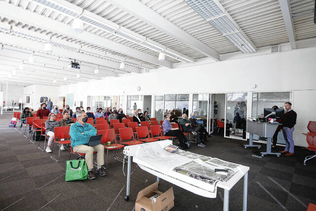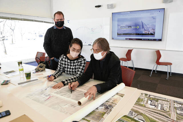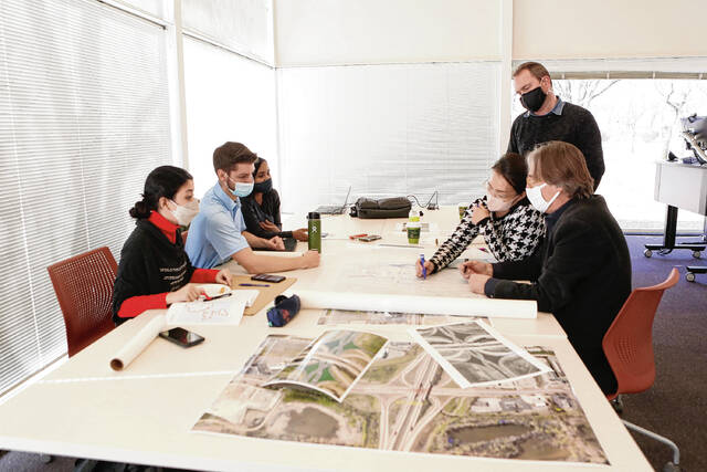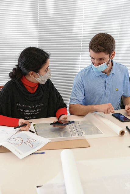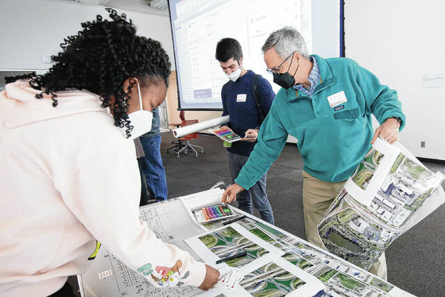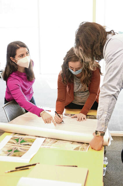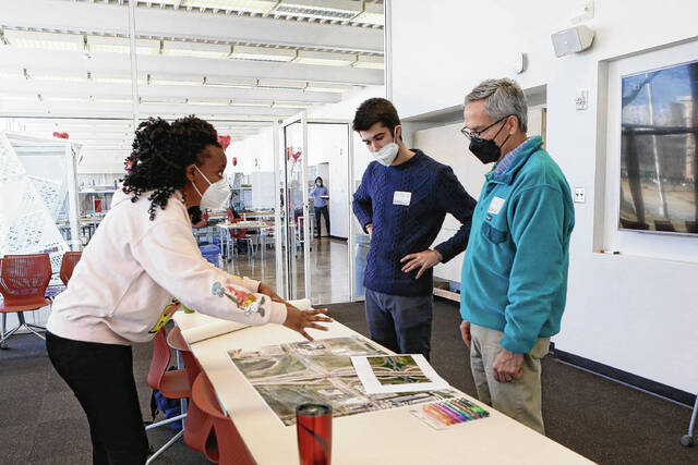 Carla Clark | For The Republic Sepideh Naghavi and Kaleb Harris work together during the architectural design charrette hosted by the J.Irwin Miller Architecture Program, Saturday, February 26, 2022.