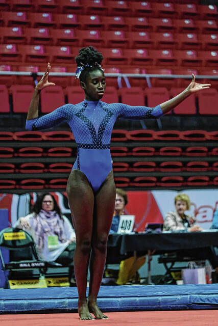 Five hours later, Emily Moore etched her name alongside those previous 49 winners. The Columbus North senior won not only the beam and floor events, but took home the all-around with a score of 38.275.