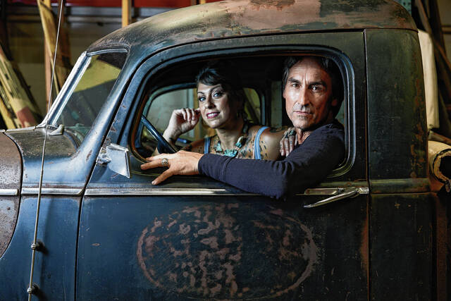 “American Pickers” hosts Danielle Colby and Mike Wolfe are shown in a publicity shot.
