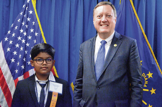 Columbus student Aniket Singh from Southside Elementary School served as a Senate page during the 2022 session of the Indiana General Assembly at the Statehouse at the invitation of state Sen. Eric Koch (R-Bedford).