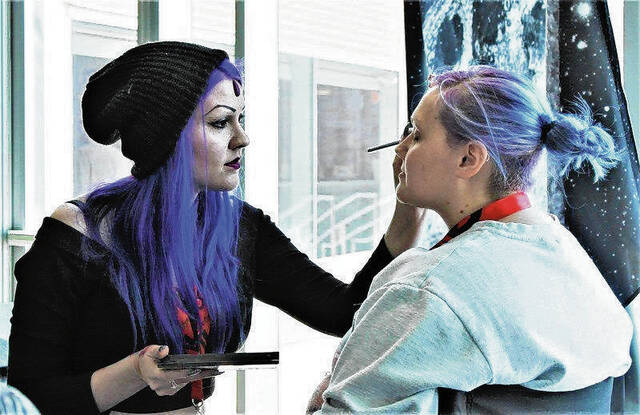 Makeup artist Sarah Johnson does face painting at one of the vendor booths at a past Columbus Comic Con at University Library.