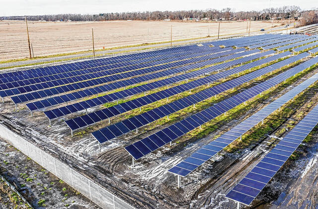 A solar farm is shown near South Bend.