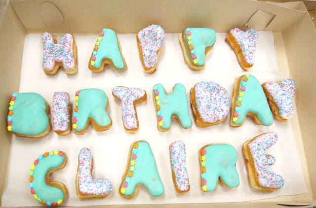 A box of specialty donuts for a birthday. They can come with injectors so they can be injected with the person’s choice of cream fillings. Donut Central, Friday, March 11, 2022 Carla Clark | For The Republic