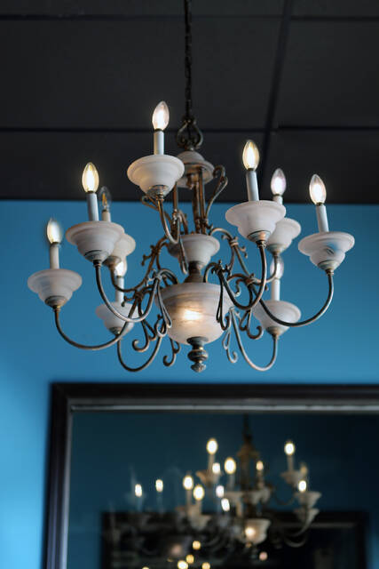 Chandeliers purchased at auction from the Sabre Room wedding venue located in Hicory HIlls, IL, now installed at Donut Central, Friday, March 11, 2022 Carla Clark | For The Republic