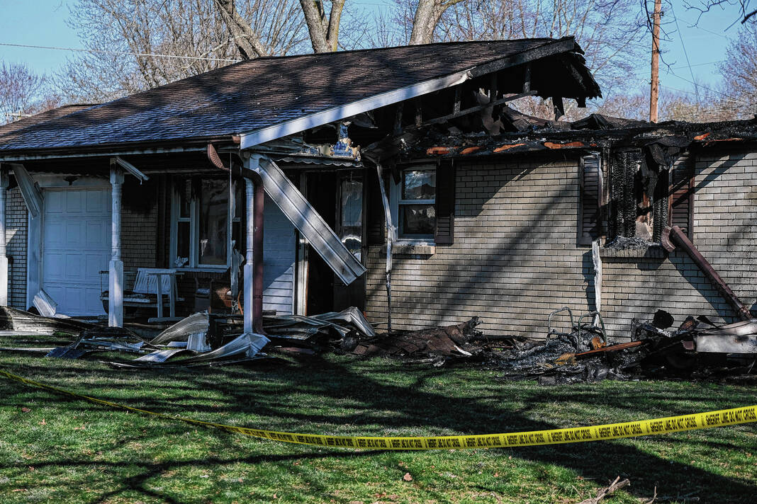 Mike Wolanin | The Republic A view of the scene of a fatal fire at 1142 Charles Street in Taylorsville, Ind., Monday, March 28, 2022.