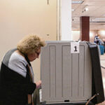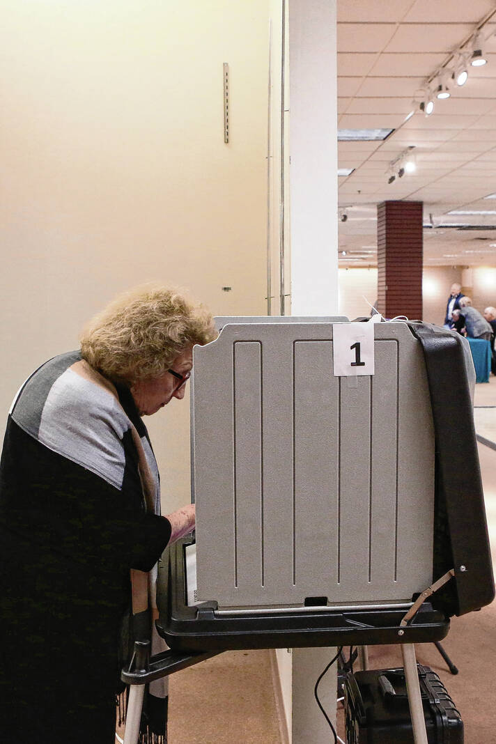 Carla Clark | For The Republic Nancy Ann Pence-Fritsch casts her ballot during early voting for the primary at the early voting center located at NexusPark in Columbus, Indiana, Tuesday, April 5, 2022