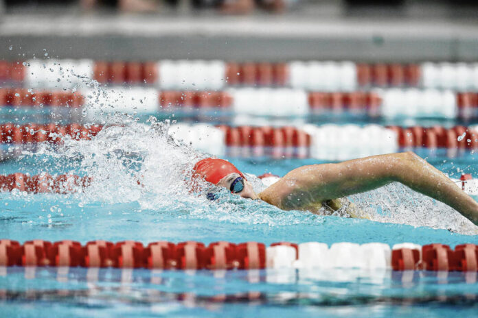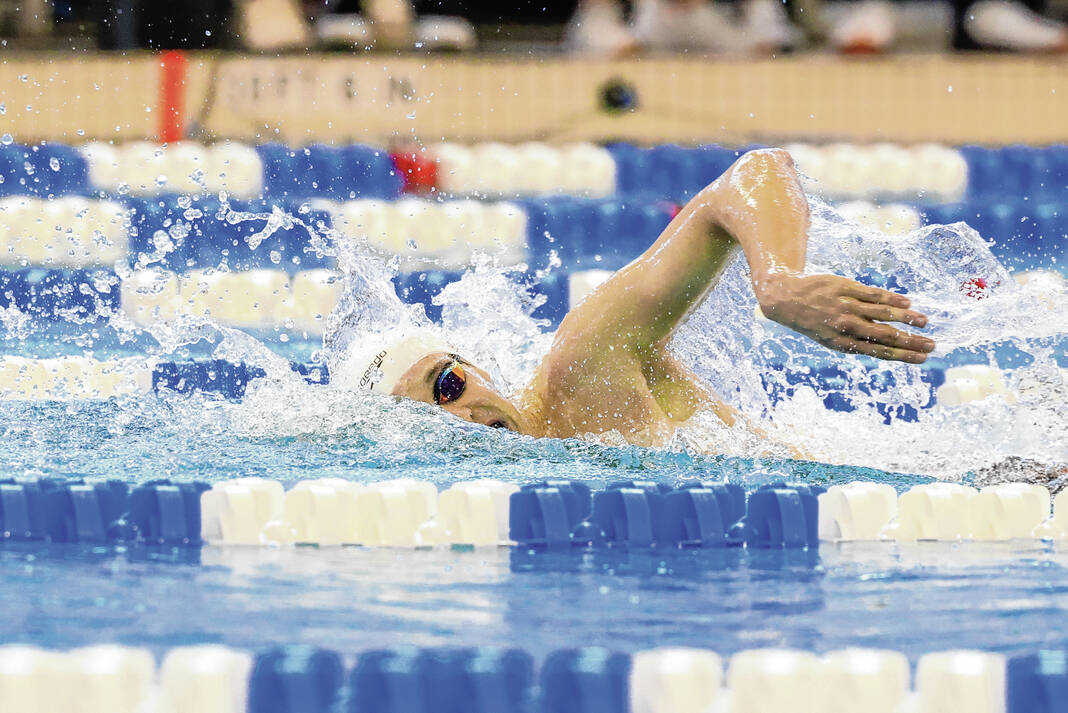 Indiana University’s Michael Brinegar swims against Purdue Jan. 22, 2022 at Counsilman-Billingsley Aquatics Center in Bloomington, IN.