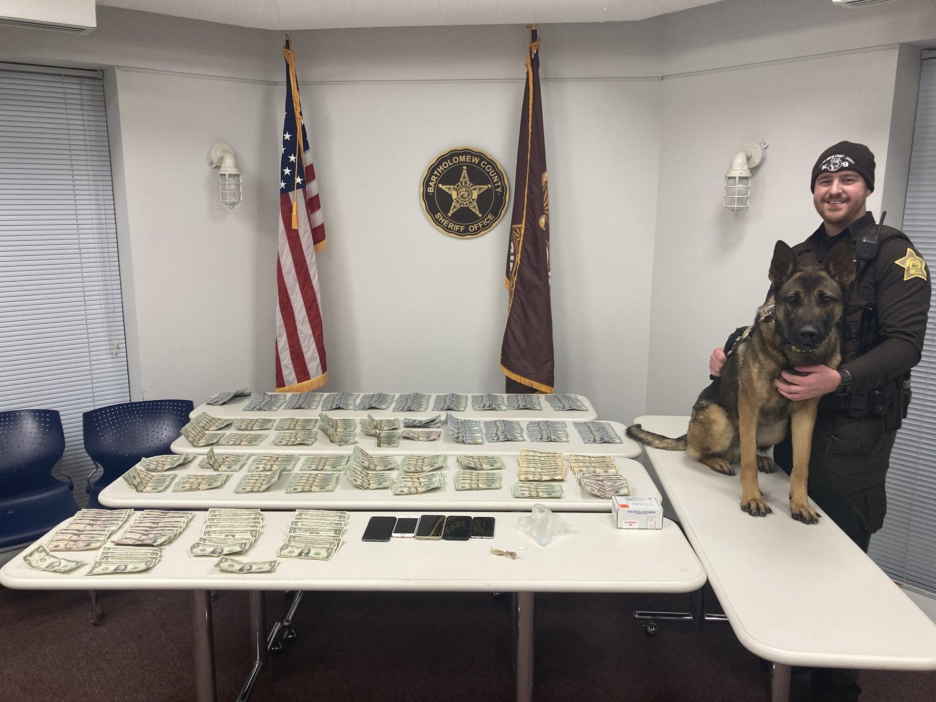 COLUMBUS, Ind. — A Bartholomew County Sheriff’s deputy arrested two individuals wanted on warrants for drug-related offenses during a traffic stop at 12:52 a.m. Friday.