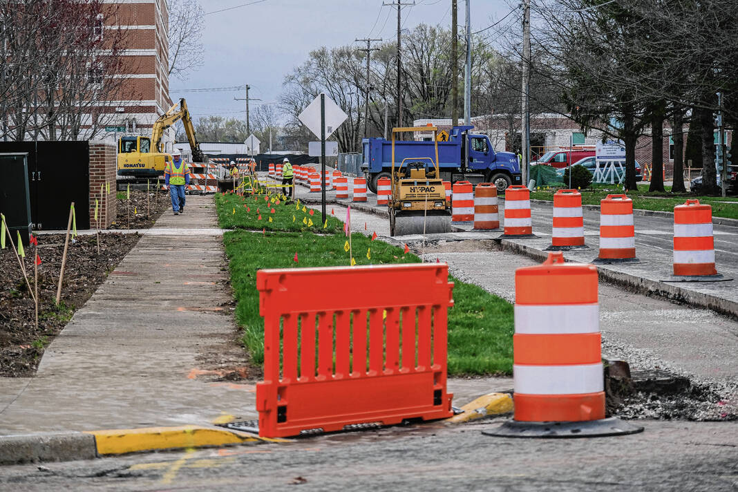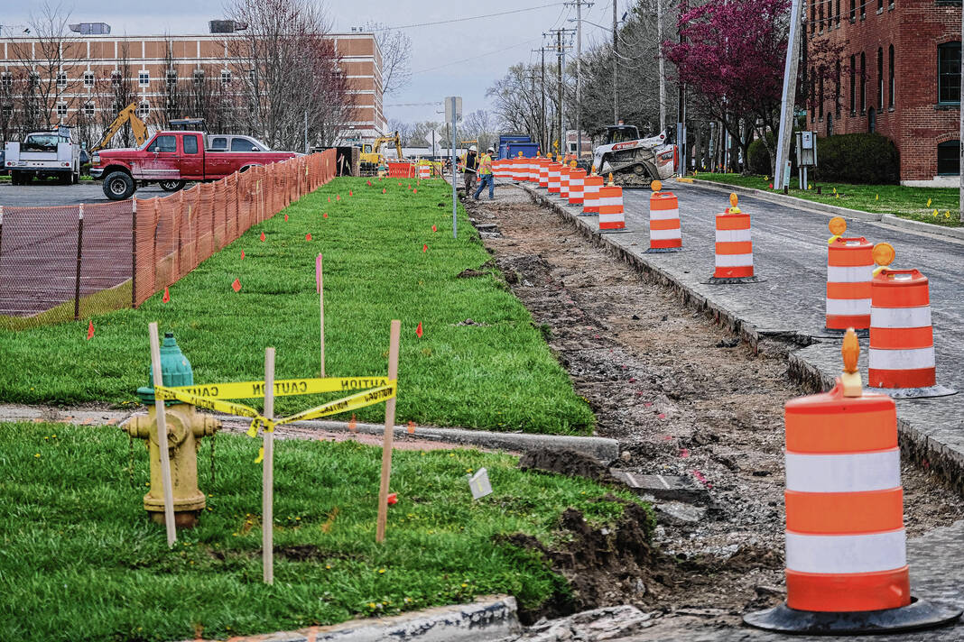 Mike Wolanin | The Republic Work has started on the 1821 Trail adjacent to First Street in Columbus, Ind., Monday, April 11, 2022.