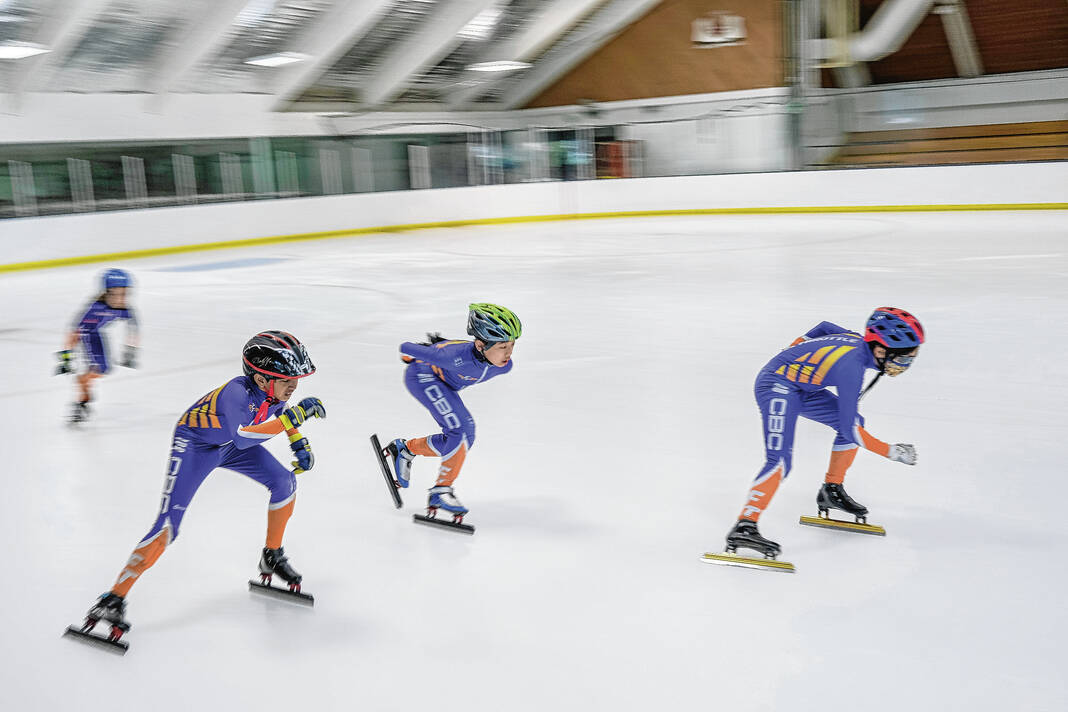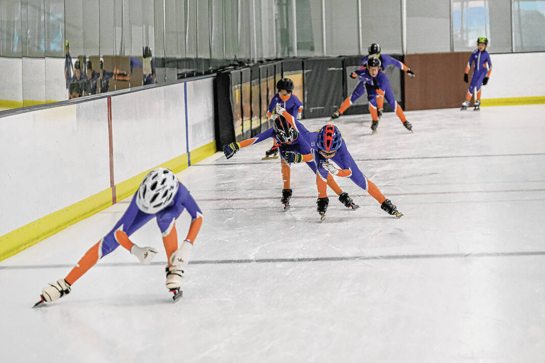 Olivia Abon, Michaela Aker and Vincia Li are figure skaters, but when they found out they’d have a chance to skate alongside Olympic speed skaters Andrew Heo and Austin Kleba, they traded in their figure skates for speed skates.