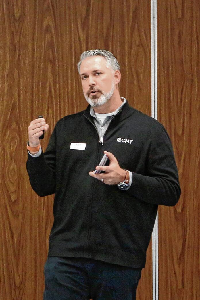 Carla Clark | For The Republic Adam Burns, of Crawford, Murphy & Tilly, speaks during the INDOT public open house held at Taylorsville elementary school for the discussion about the intersection improvement project along U.S. 31 at Tannehill Road and Bear Lane, Wednesday, April 13, 2022