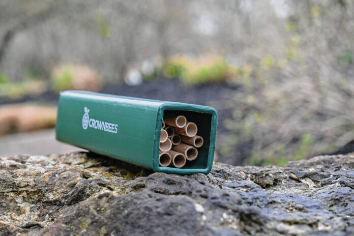 Mike Wolanin | The Republic A view of a mason bee house that will be placed in a bee and pollinator garden at St. Bartholomew’s Catholic Church in Columbus, Ind., Monday, April 18, 2022.