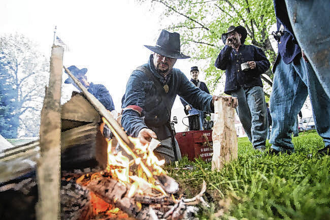 Civil War reenactors gather near a campfire during a prior Sassafras Tea Festival at the Jennings County Courthouse Square in Vernon.