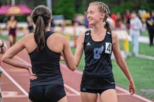 Junior Brianna Newell and senior Katherine Rumsey went 1-2 in the 1,600, Baker and junior Julie Klaus went 1-2 in the 800 and Rumsey and junior Julia Kiesler went 1-2 in the 3,200. Freshman Kyleigh Wolf, Klaus, Brianna Newell and Baker won the 4×800 relay in 9:36.64 in an event in which they ran the state’s fastest time of 9:28.52 in last week’s dual meet at Columbus East.