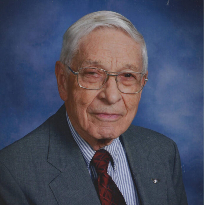 He went to grade school at a one-room schoolhouse. In his youth, he delivered newspapers and milk and worked on his uncle’s farm and at a drug store as a soda jerk. He graduated from Rodney Wilson High School in 1945. Drafted into WWII, he served as a surveyor and cartographer in Korea with the 657th Army Engineering. He earned his BA in history under the GI Bill at Albion College and later married Twyla May Savage of Owosso, Michigan on September 28, 1952, and they made their home in Niles, Michigan for 11 years. He began his career with Indiana Bell Telephone Co. as a traveling salesman, selling ads for the Yellow Pages. After transferring to Columbus, Indiana in 1964, he sold telephone systems and was Indiana Salesman of the Year in 1965. He became Account Manager for Cummins Engine Co, Arvin Industries, and Jeff Boat in Jeffersonville. He was active in the local sports scene as a Donner Swim Club Parent, little league baseball coach, a 45-year member of the Columbus North Football Chain Gang, and a stalwart supporter of Columbus North girls and boys sports. He was a member of the Metropolitan Exchange Club, PTA, and the Senior Center. He was a lobbyist for AARP, a voting precinct captain, a long-time blood donor, and an architecture tour guide for the Visitor’s Center where he was known for never having to refer to his notes. In 2012 he was interviewed on NPR for a program on Columbus architecture.