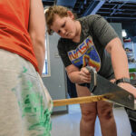 Mike Wolanin | The Republic CSA New Tech ninth graders Bex Sidwell, left, and Alyssa Whitted cut a support for a cage of chicks as part of a series of environmental projects at CSA New Tech in Columbus, Ind., Thursday, May 5, 2022.