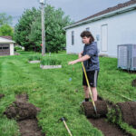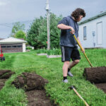 Mike Wolanin | The Republic CSA New Tech ninth grader Briceon Ernest strips sod as part of a series of environmental projects at CSA New Tech in Columbus, Ind., Thursday, May 5, 2022.