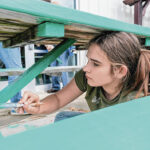 Mike Wolanin | The Republic CSA New Tech ninth grader Natalie Lewis paints a picnic table as part of a series of environmental projects at CSA New Tech in Columbus, Ind., Thursday, May 5, 2022.