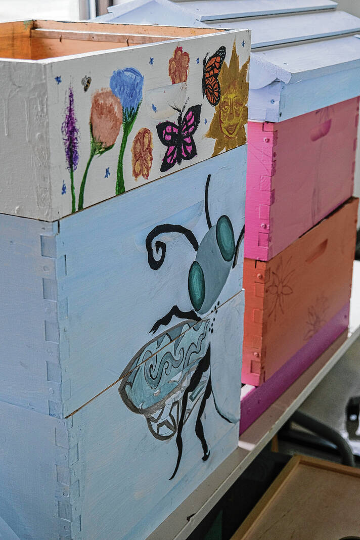 “We built one for ourselves and four other community partners,” she said. “These community partners have been wanting to beekeep for a while. … So we wrapped our project up into theirs. And so we built the hives for them and painted them as they wished.”