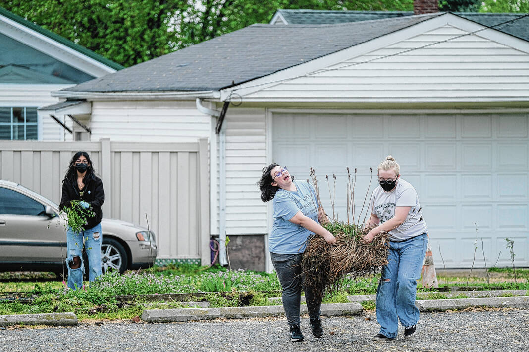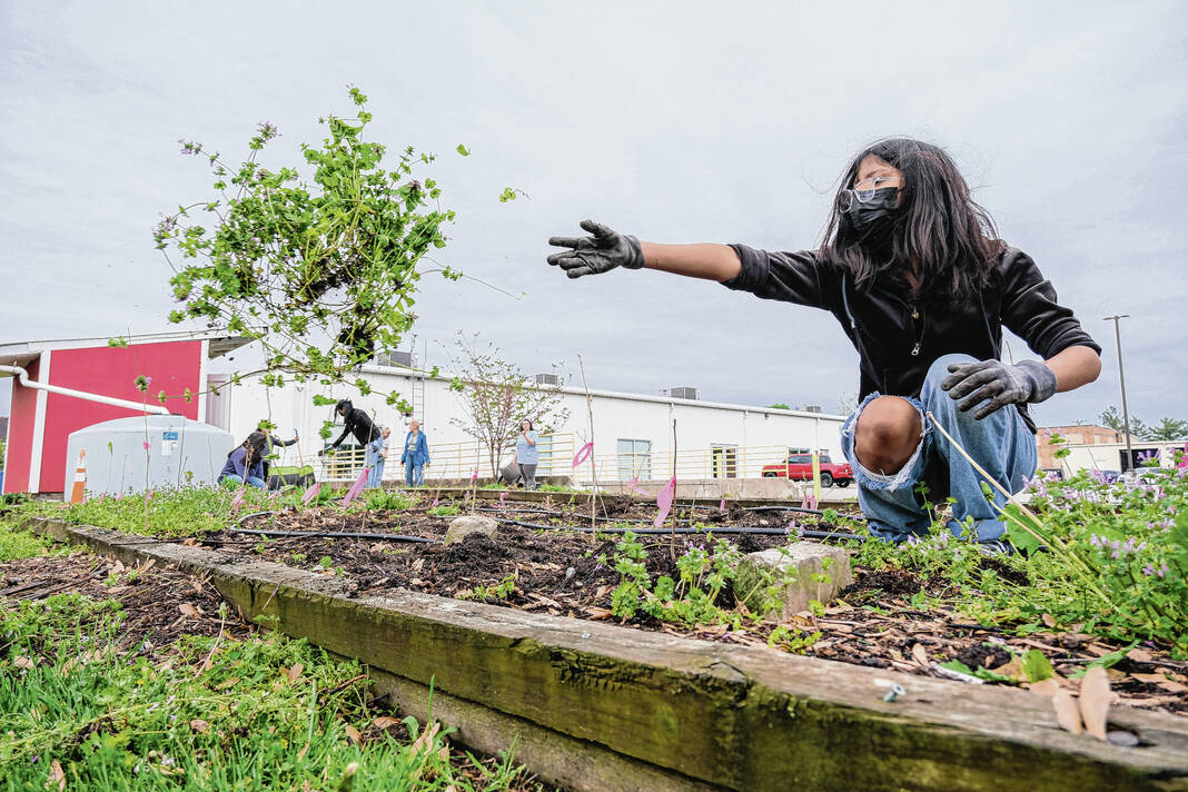 Mike Wolanin | The Republic CSA New Tech ninth grader Gaudalupe Castaneda clears a garden bed as part of a series of environmental projects at CSA New Tech in Columbus, Ind., Thursday, May 5, 2022.