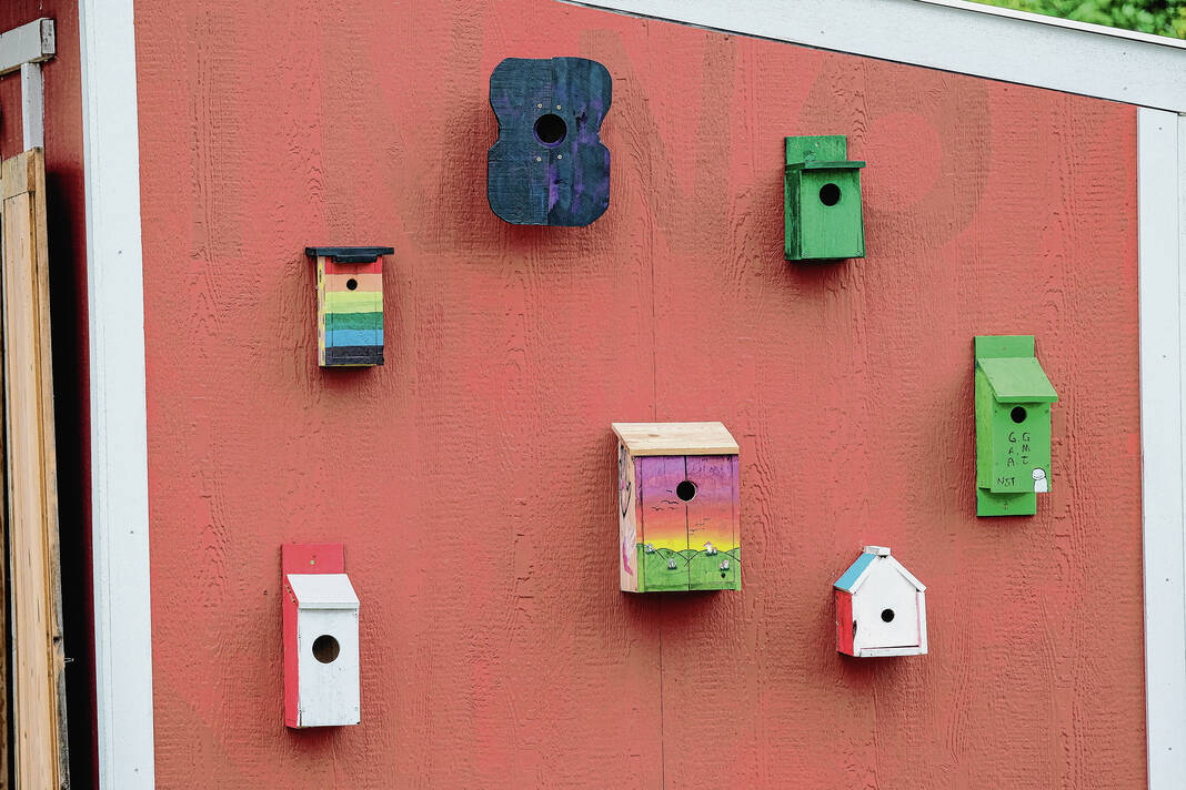 Mike Wolanin | The Republic Birdhouses are attached to a shed at CSA New Tech in Columbus, Ind., Thursday, May 5, 2022.