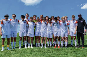 The Columbus Express Soccer Club 2005 Boys Orange team, coached by Ty Smith, won its bracket with a 3-0 record at the Blue Chip College Showcase in Cincinnati. Team members include, from left, Eli Miller, Misaki Takemoto, Drew Hassebroek, Sam Chandler, Nathan Imlay, Flynn Keele, Aidan Whitley, Anthony Johnson, J.D. Severe, Eliot Cook, Oscar Ballinas and Pavit Dhillon.