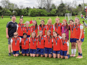 The Columbus Express Soccer Club 2008 Girls Orange team finished runner-up in the Red Lion Tournament in Indianapolis. Team members include, front row from left, Aliyah Young, Alison Hernandez, Josie Steinmetz, Adelin Butcher, Grace Merritt, Sabrina Portaluppi, Rosie Brockhaus; and back row, coach David Young, Grace Bethuram, Irelynn McAlister, Mahal Ross, Avery Baker, Rachel Fulp, Gabby Spurgeon, Kylie Clark, Lucia Duran-Blanc and Sammie Kegerreis.