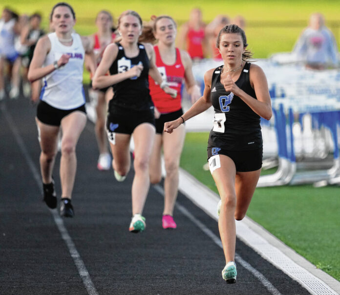 The Bull Dogs went 1-2 in all three distance events and set sectional records in the 4×800 relay and 800. Lily Baker ran a sectional-record 2 minutes, 15,31 seconds in the 800 and anchored the 4×800 relay team that also included Katherine Rumsey, Kyleigh Wolf and Brianna Newell to a sectional-record 9:27.61.