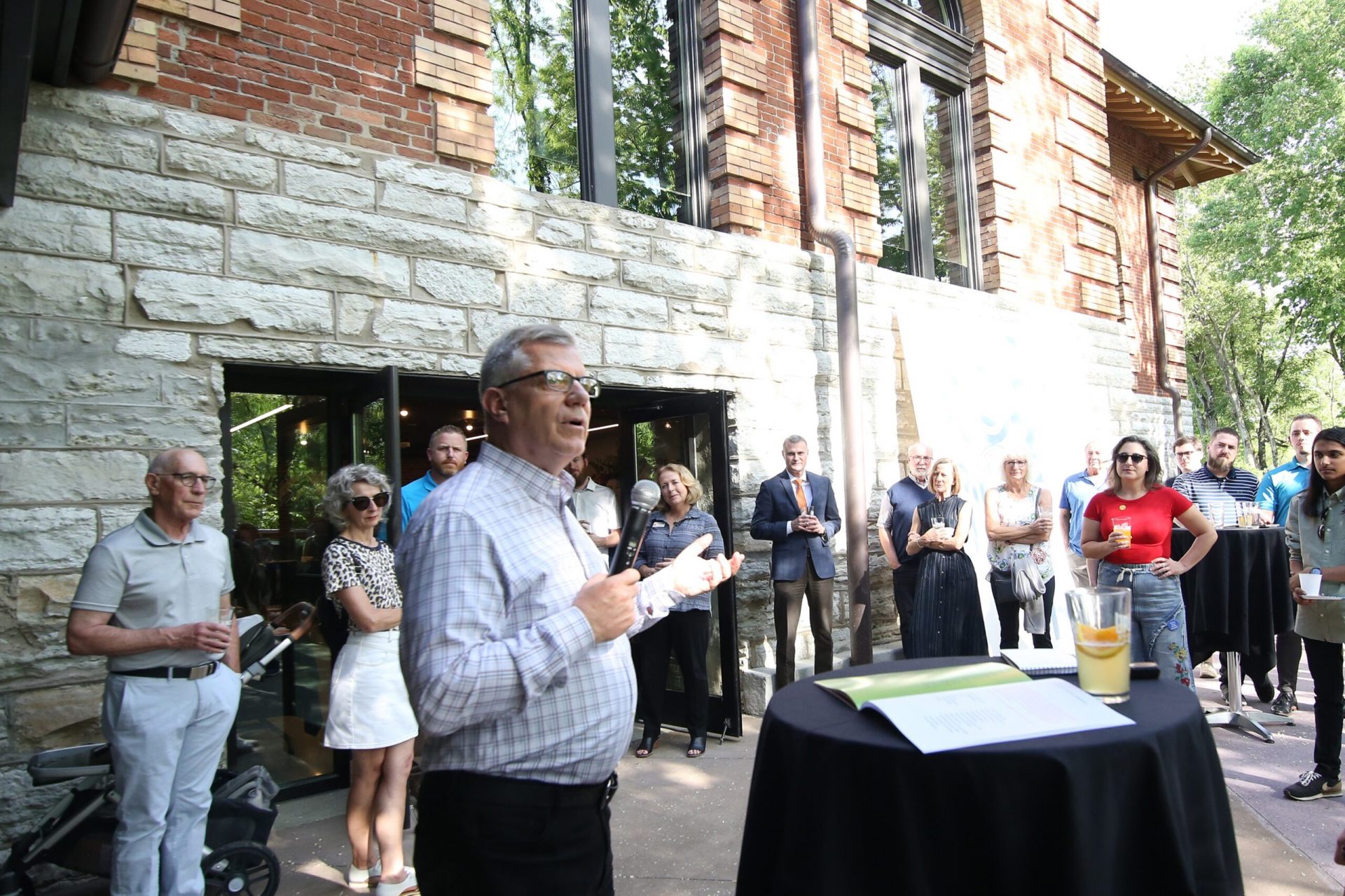Each announcement was greeted with enthusiastic applause from an estimated crowd of 100 people on the venue’s back deck. Attendees included representatives from the Columbus Area Chamber of Commerce, the Columbus Area Visitors Center, the Columbus Area Arts Council, business leaders and others.