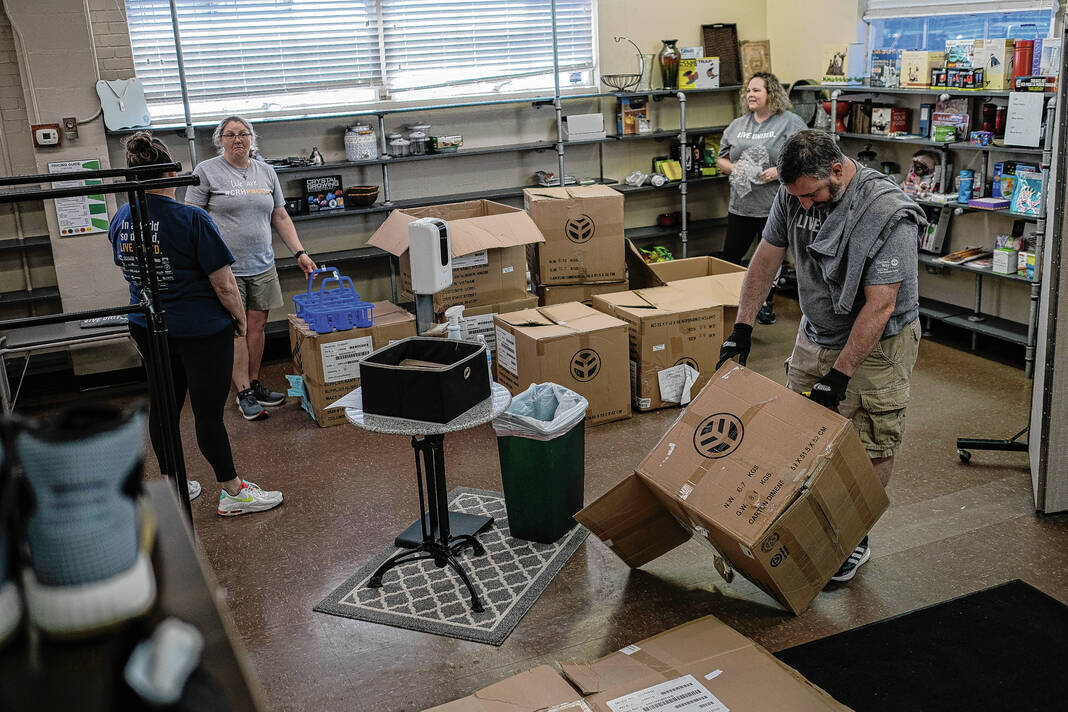 Mike Wolanin | The Republic Volunteers sort through items and stock shelves at San Souci for the United Way’s Day of Caring in Columbus, Ind., Friday, May 20, 2022.
