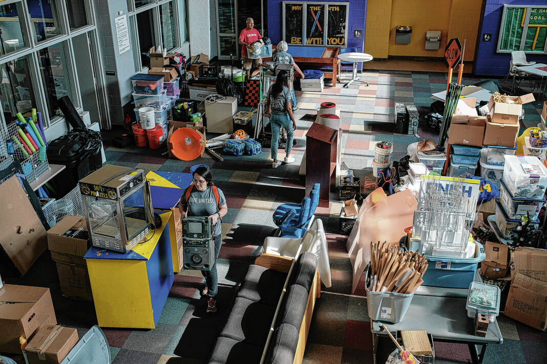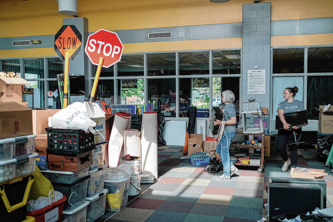 Mike Wolanin | The Republic Volunteers help sort and move items pulled from the basement at Foundation for Youth for the United Way’s Day of Caring in Columbus, Ind., Friday, May 20, 2022.