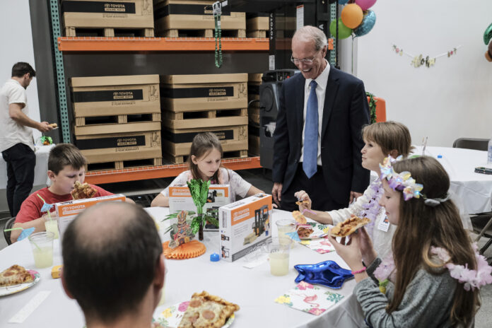 The day culminated with the announcement that, thanks to a number of company fundraisers, Adelyn’s wish had been granted and the family’s trip is set for June 19 to 25. Then, as the wall of the presentation room slid away and the theme to “Hawaii Five-O” was played, the Spahrs were met with a cheering, dancing team of Toyota employees and a pizza party lunch.