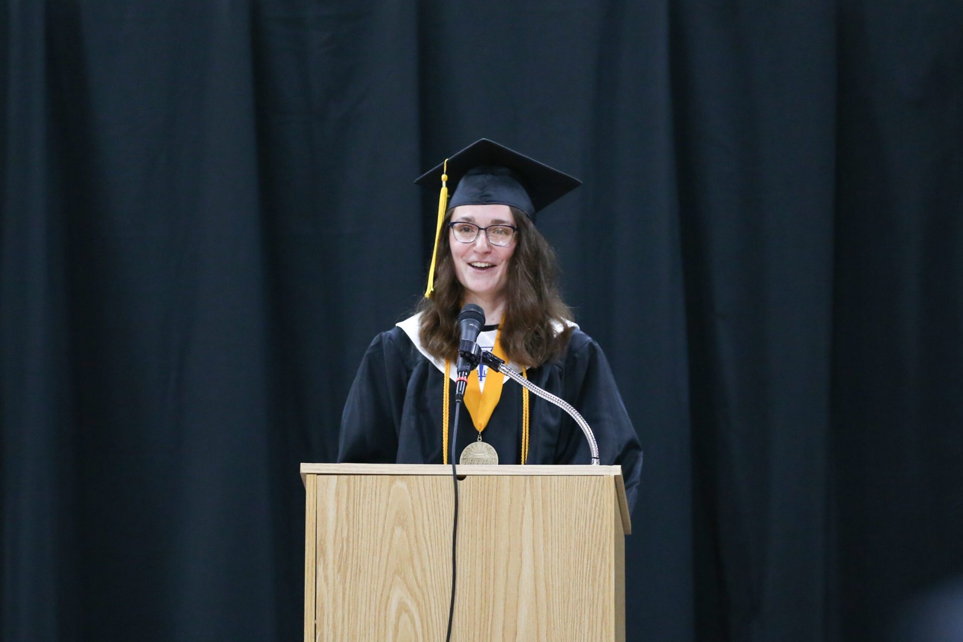 Class president Gabrielle Johns speaks during the Hauser graduation May 27, 2022. Greg Jones| For The Republic