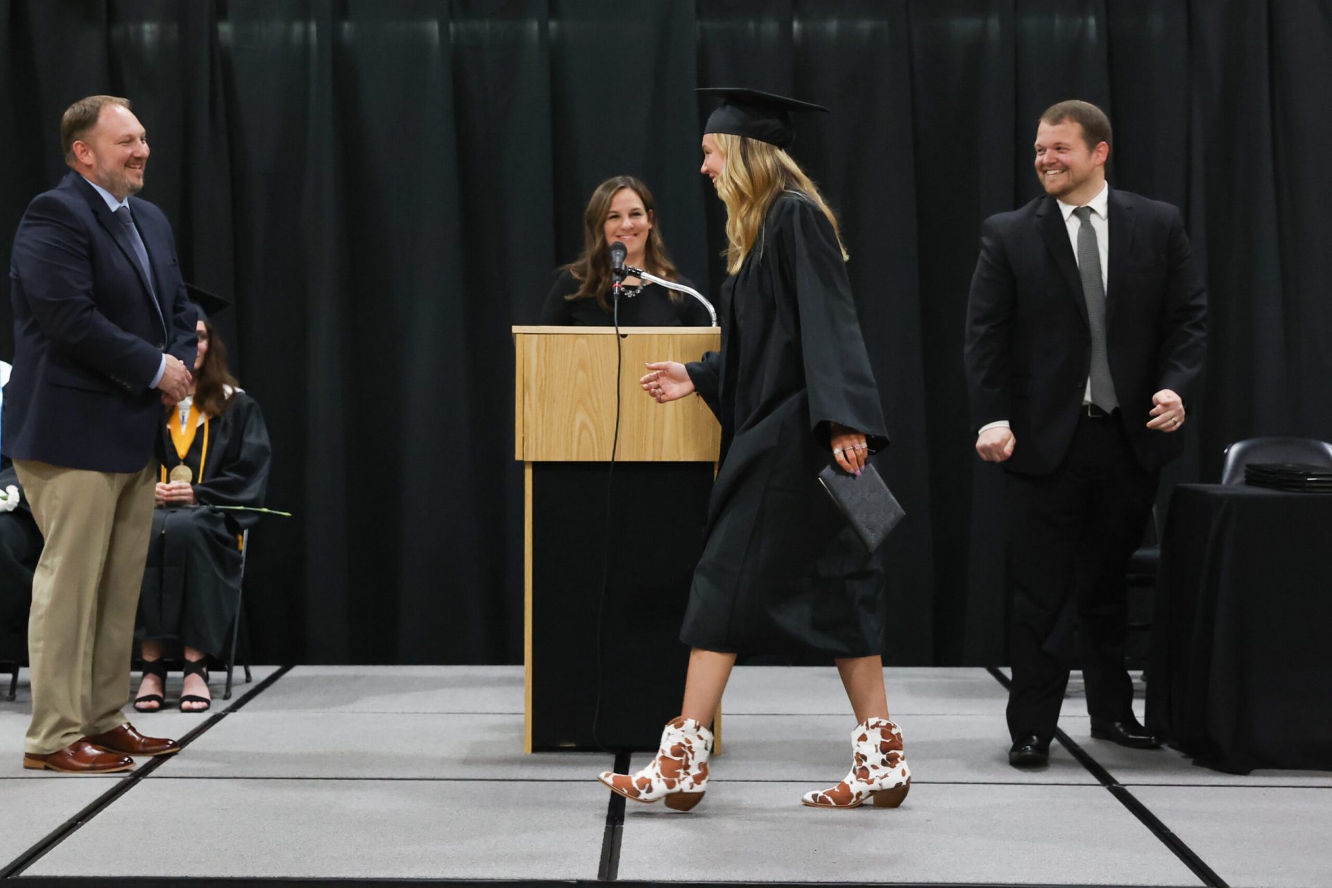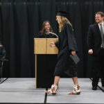 Class of 2022 member Paige Holaday crosses the stage with her diploma in hand during the Hauser graduation May 27, 2022. Greg Jones| For The Republic
