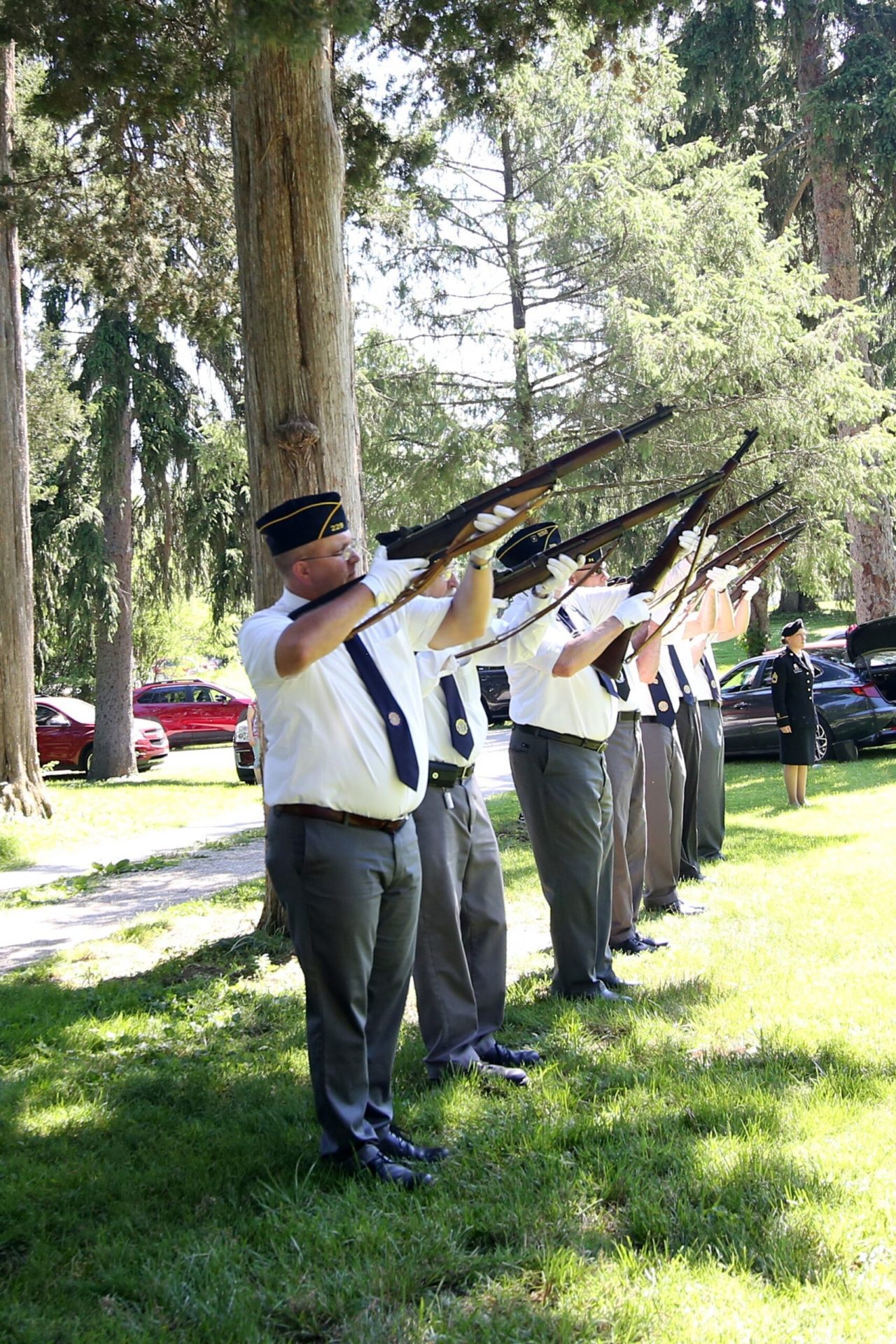 The 21 gun salute during the Memorial Day ceremony held by the Veterans Memorial at the Moravian Cemetery in Hope, Indiana, Monday, May 30, 2022 Carla Clark | For The Republic