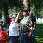 Gerald “Jerry” McKinney salutes during the Memorial Day ceremony held by the Veterans Memorial at the Moravian Cemetery in Hope, Indiana, Monday, May 30, 2022 Carla Clark | For The Republic