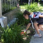 Layla Kammel lays the flowers during the Memorial Day ceremony held by the Veterans Memorial at the Moravian Cemetery in Hope, Indiana, Monday, May 30, 2022 Carla Clark | For The Republic