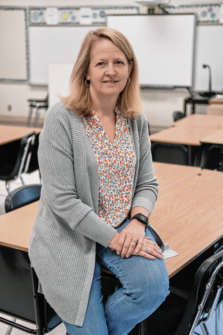 Mike Wolanin | The Republic Physical education teacher Jill Garris poses for a portrait at Columbus Signature Academy Lincoln in Columbus, Ind., Monday, May 23, 2022. Garris was recently named as recipient of the William and Sally Hanley Excellence in Teaching Award. The award is administered by the Heritage Fund.