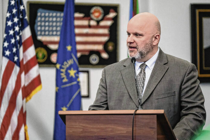 Mike Wolanin | The Republic Bartholomew Superior Court 1 Judge James Worton gives introductions during the Bartholomew County Veterans Treatment Court graduation ceremony in Bartholomew Superior Court 1 at the Bartholomew County Courthouse in Columbus, Ind., Thursday, May 12, 2022.