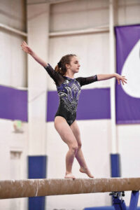 Victory Gymnastics Academy’s Hayden Harper competes on the beam at the state championships in Plainfield.