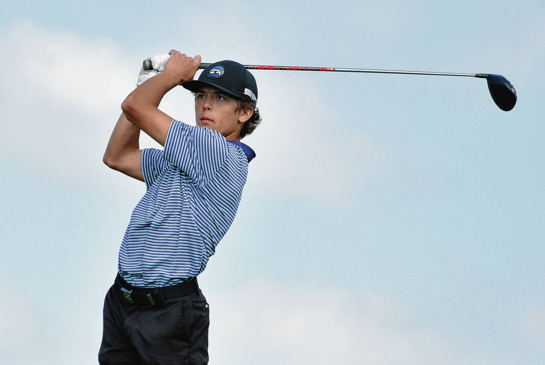 Columbus North’s Willy Davis tees off the No. 1 at Champions Pointe Golf Club in Thursday’s Providence Regional.