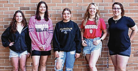 Columbus North Bull Dog Alumni scholars, from left, are Emily Moore, Megan Allman, Lillian Bringle, Michaela Brown and Aiyanah Scism. Not pictured are Grace Champan and Rhett Harmon.