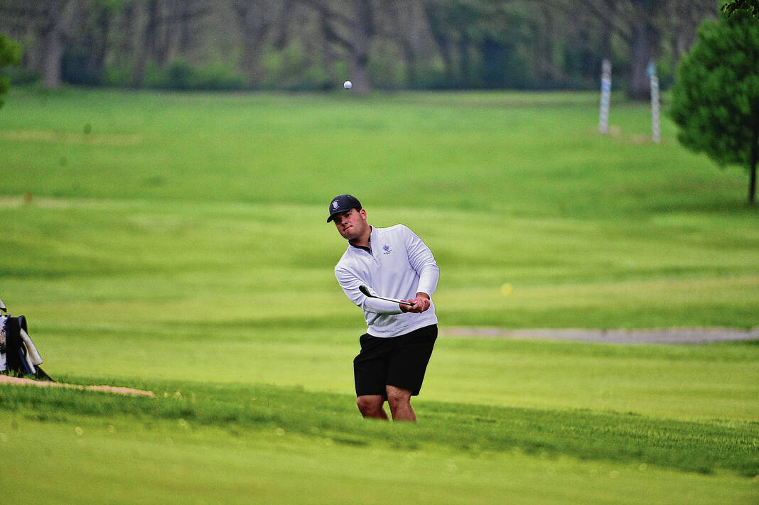 Columbus North’s Willy Davis watches his chip shot on No. 9 during a match against Columbus East May 5 at Otter Creek Golf Course.