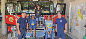Jana Wiersema | The Republic Columbus firefighters Nathan Barnett and Cody Melton give Junior Jones, Jacob Jones and Kimale Freeman a tour of the Station 1 firehouse.