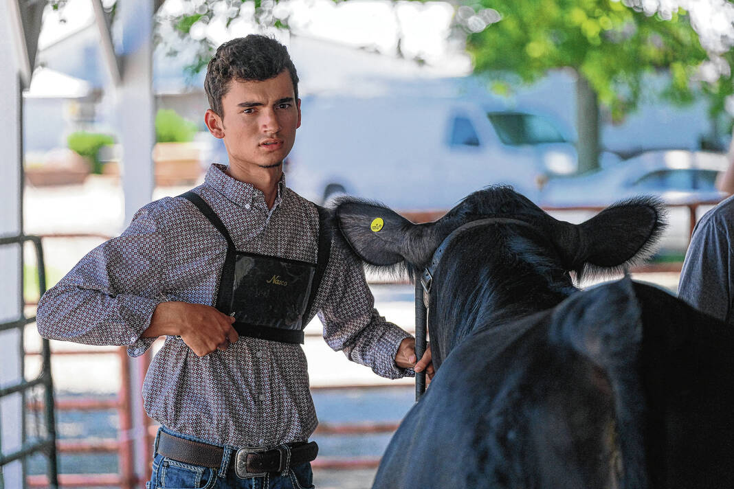 Mike Wolanin | The Republic Braden Young prepares to compete in the beef show during the Bartholomew County 4-H Fair at the Bartholomew County 4-H Fairgrounds in Columbus, Ind., Thursday, June 30, 2022.