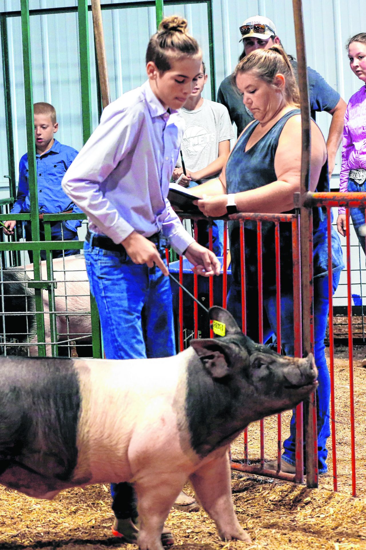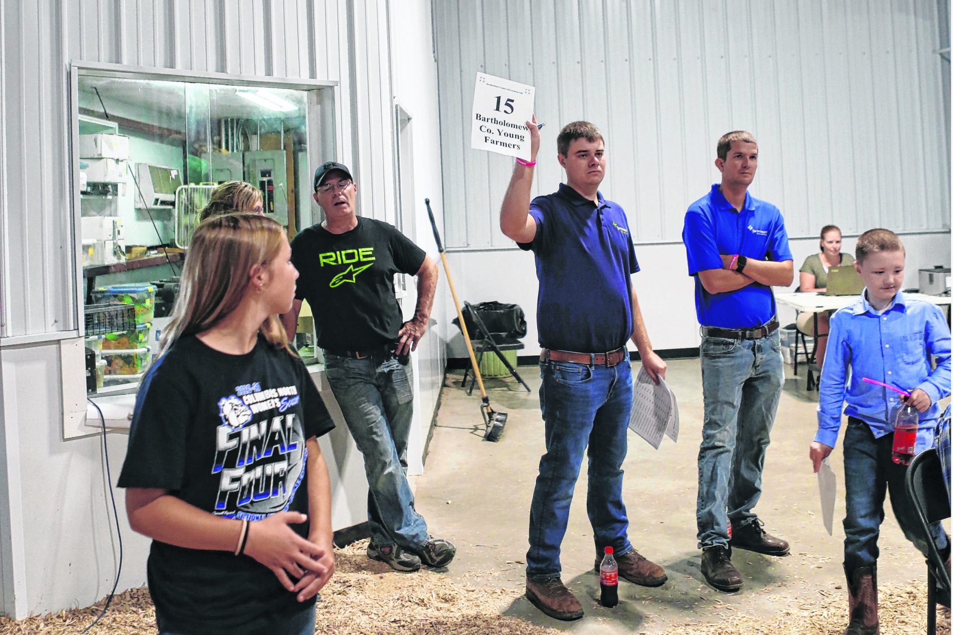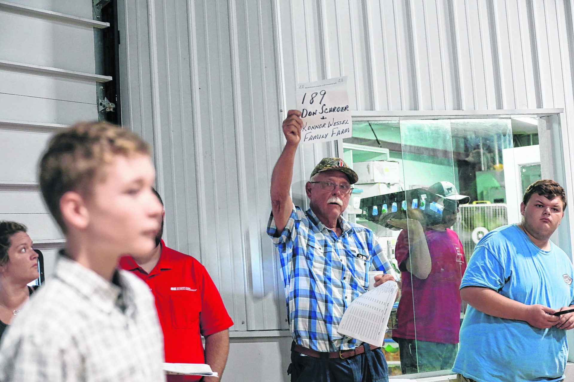 Pulling double-duty during Saturday’s auction as both bidder and event volunteer was Carl Lienhoop, chairman of the Bartholomew County Commissioners. Lienhoop admitted he was originally a bit surprised last year when the livestock auction became a premium-only sale.