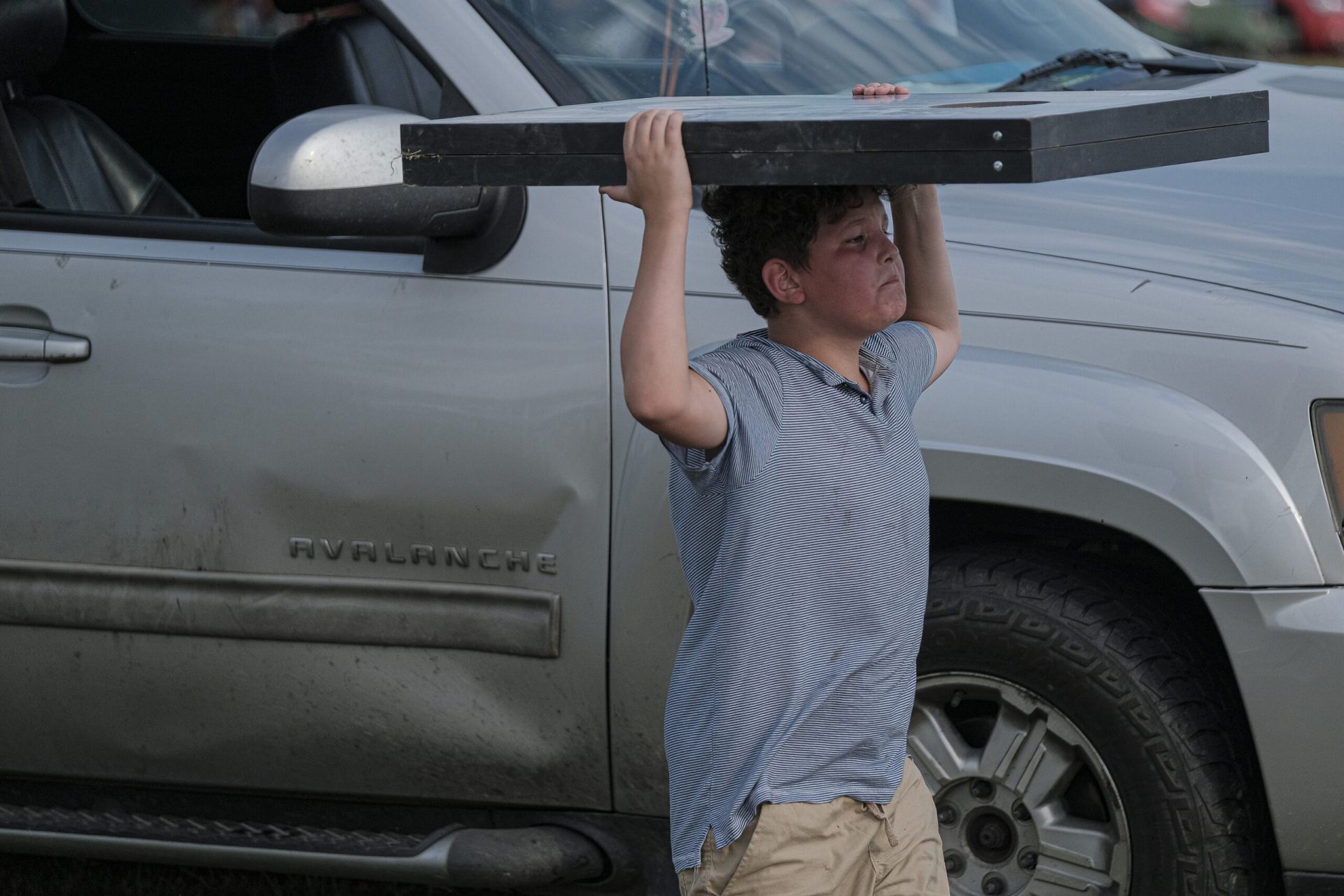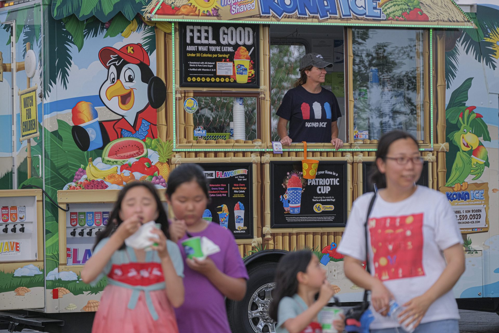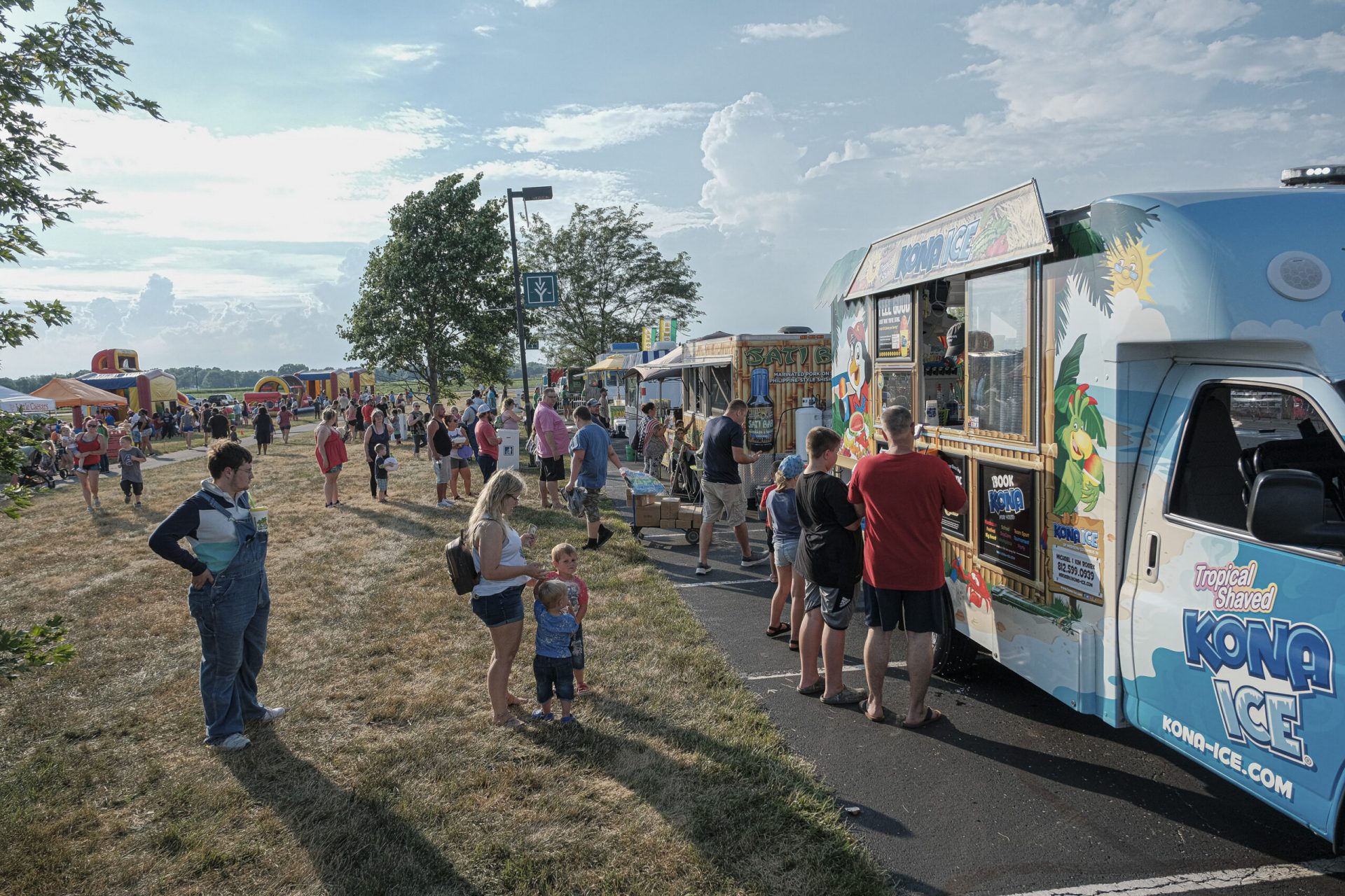At the Don Chuy Taco Truck that normally parks at nearby Camp Atterbury, burritos were the top-selling item with a crowd that seemed intent on eating while walking.